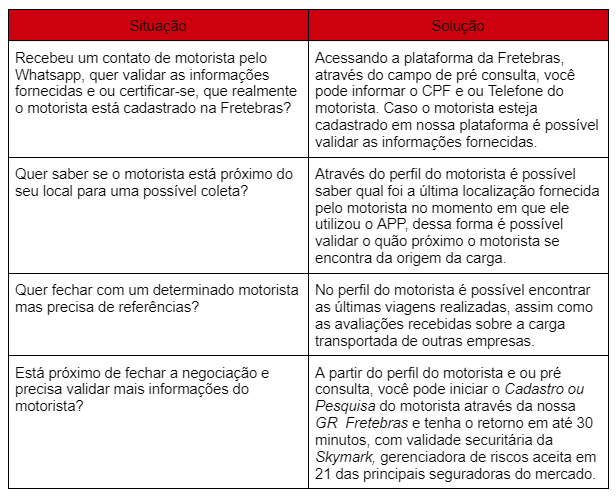 - Compare a foto do perfil do motorista na Fretebras com a do motorista no Whatsapp ou pessoalmente. Nossas fotos de perfil são 100% validadas;